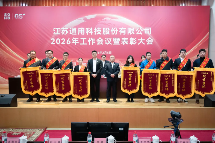 2月5日,通用股份召開2026年工作會議暨表彰大會,會議以習近平新時代中國特色社會主義思想為指導,深入學習貫徹黨的二十屆四中全會、中央經濟工作會議精神,全面總結公司2025年工作,分析發展形勢,系統部署2026年重點任務。蘇豪控股集團黨委委員、副總裁晉永甫出席會議并講話。公司黨委書記、董事長賈國榮,黨委副書記、總經理顧萃等領導班子成員及全體員工現場參會。泰國、柬埔寨海外基地全體員工線上同步參會。