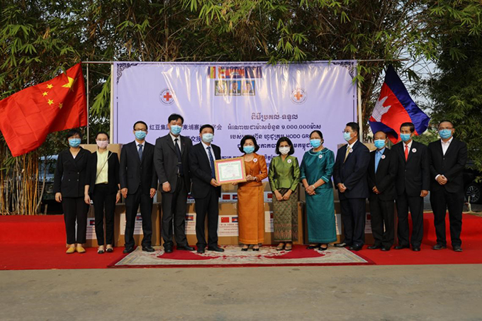 柬埔寨王國當地時間4月1日下午4:00(北京時間17:00),一場“紅豆集團捐贈柬埔寨紅十字會100萬只口罩接收儀式”正在柬埔寨紅十字會會長、柬埔寨王國首相洪森夫人文拉尼親王的辦公室內舉行。中國駐柬埔寨大使館經濟商務參贊處參贊鄔國權、西哈努克港經濟特區公司總經理曹建江和柬埔寨紅十字會副會長ANY SOKAN、秘書長POM CHANNY,柬埔寨紅十字會衛生局局長SOK LONG等出席活動。