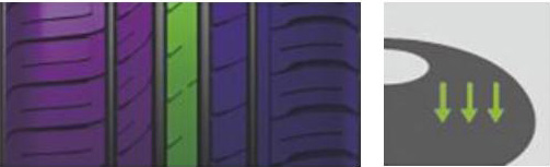 胎面非對(duì)稱的花紋設(shè)計(jì),既確保了優(yōu)異的彎道抓著力又分散了轉(zhuǎn)向時(shí)產(chǎn)生的接地壓力。