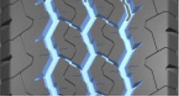 三條寬闊的曲折排水溝槽,有效防止輪胎側向打滑;S型花紋設計,提高輪胎制動剎車性能。